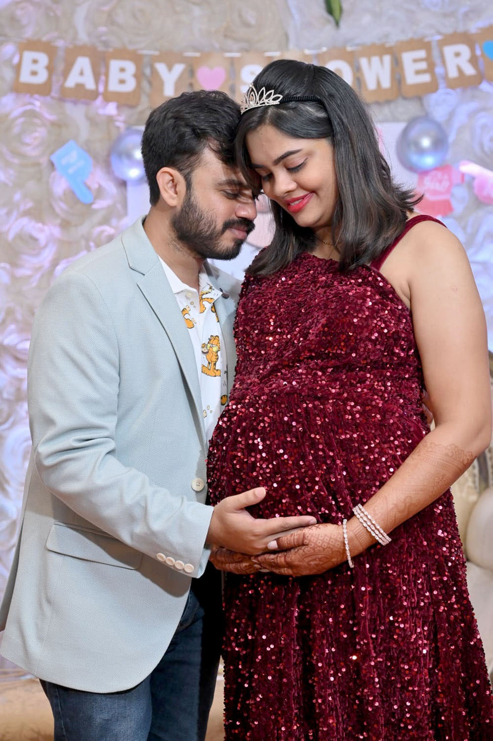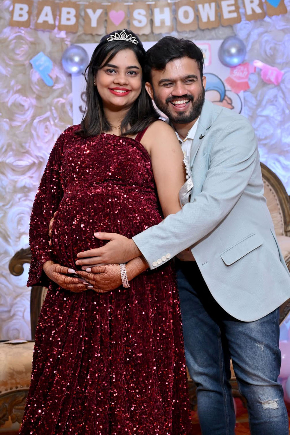 Maroon Velvet Sequence One Shoulder Gown
